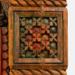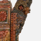 Balanço de teca esculpido com decoração policromada indiana antiga. Índia, séc. XX. Dimensões: 222 x 82 x 26 cm.