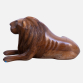 Leão deitado – Escultura de artesanato em madeira nobre. Brasil, séc. XX. Dimensões: 31 x 25 x 63 cm.