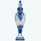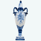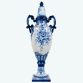 Grande ânfora com alças em faiança europeia decorada com pintura manual representando cenas florais em azul cobalto. séc. XX. Dimensões: 70 x 30 x 20 cm. No estado.