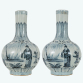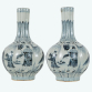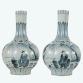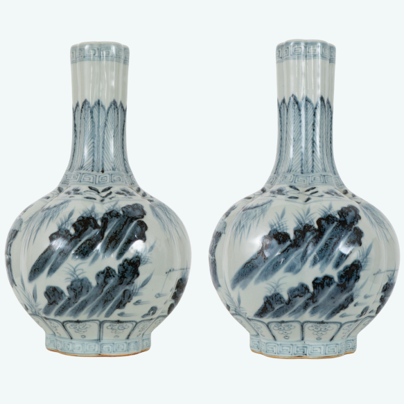 Par de vasos em porcelana chinesa ao estilo da Cia. das Índias da dinastia Ming decorados com esmaltes azul e branco; China, início do séc. XXI. Dimensões: 35 x 24 x 24 cm cada.