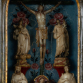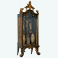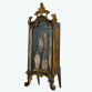 Belíssimo oratório, dito “lapinha”, construído em madeira com talha rasa e delicada ornamentada por volutas, palmeta e frisos dourados. Interior com Cristo crucificado e diversas imagens de santos em pedra de sabão. Minas Gerais, Brasil, séc. XVIII. Dimensões: 55 x 24 x 12 cm.