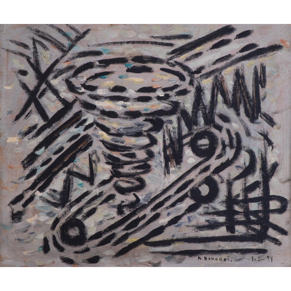 Aldo Bonadei - Sem título - 1944 - Óleo sobre madeira - Assinado canto inferior direito - 27 x 32 cm. Ex-coleção Willys de Castro e Hércules Barsotti.