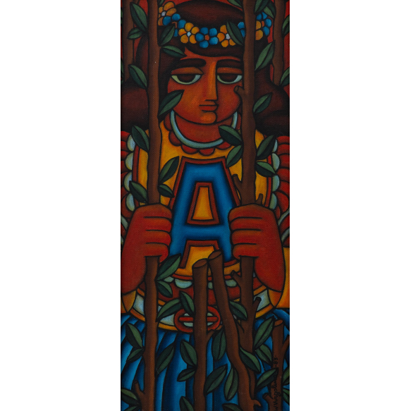 Wellington Virgolino - A... mocinha no meio dos galhos - 1983 - Óleo sobre tela - Assinado canto inferior direito - 68 x 24 cm.