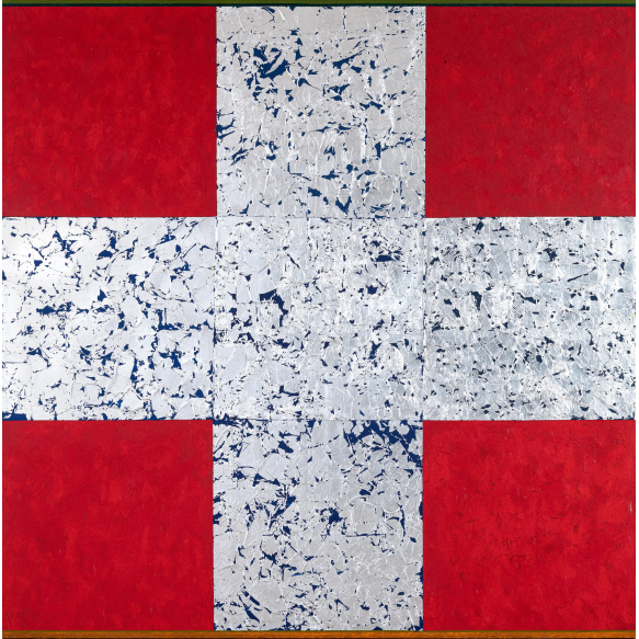 Gonçalo Ivo - Estrela da manhã - 2011 - Óleo, têmpera e folha de prata sobre tela - Assinado verso - 200 x 200 cm.