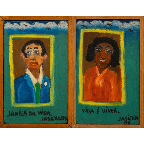 José Antônio da Silva - Vida é viver, janela da vida (Díptico) - 1989 - Óleo sobre tela - Assinado canto inferior direito - 24 x 15 cm cada.