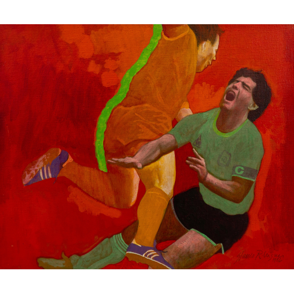 Glauco Rodrigues - Joelhada - 1986 - Óleo sobre tela - Assinado canto inferior direito - 45 x 55 cm.