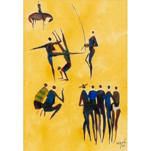 Hector Carybé - Capoeira - 1979 - Vinil encerado sobre tela - Assinado canto inferior direito - 50 x 35 cm. Etiqueta Paulo Darzé Galeria no verso.