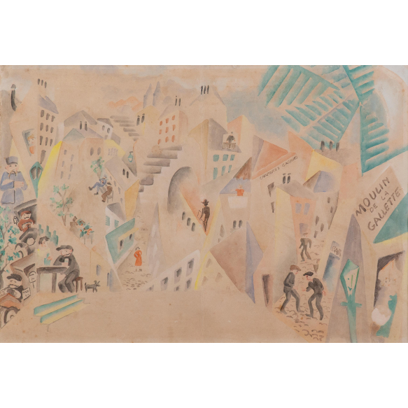Antonio Gomide - Moulin de la Gallette - Aquarela sobre cartão - 37 x 55 cm.