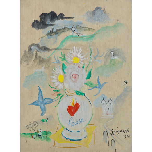Alberto da Veiga Guignard - Sem título - 1960 - Óleo sobre madeira - Assinado canto inferior direito - 36 x 27 cm - Dedicatória para Lúcia Flecha de Lima no verso.