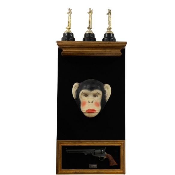 Nelson Leirner - Espécie em extinção - 2000 - Técnica mista - Assinado verso - 105 x 43 x 16 cm. Acompanha estudo: