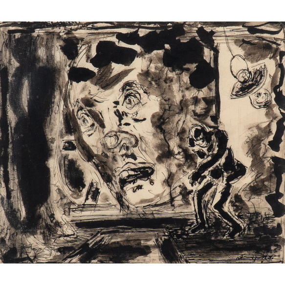Oswaldo Goeldi - Instante aterrador - Nanquim e bico de pena sobre papel - Assinado canto inferior direito - 20 x 24 cm.