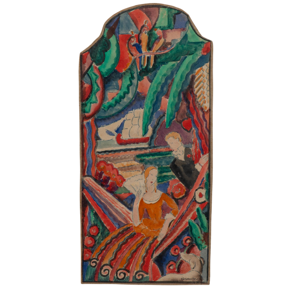 Antonio Gomide - Cena idílica com casal - déc. 1920 - Aquarela sobre papel - Assinado canto inferior direito - 30 x 15 cm.