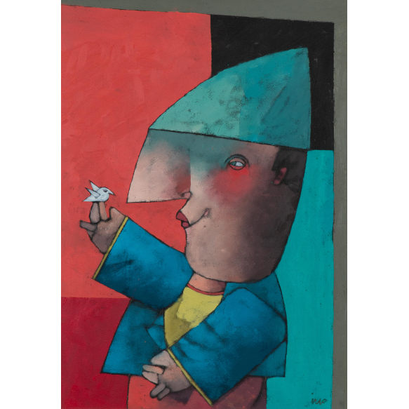 Inos Corradin - Menino e pomba - Óleo sobre tela - Assinado canto inferior direito - 70 x 50 cm.