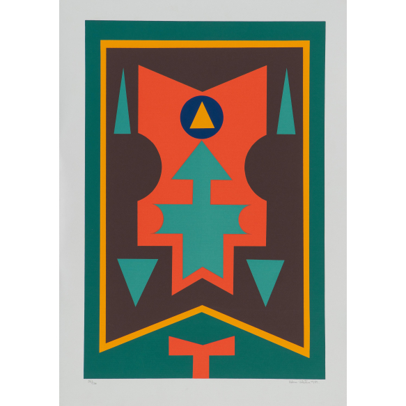 EspañolRubem Valentim - Sem título - 1989 - Serigrafia - 56/130 - Assinado canto inferior direito - 70 x 50 cm.