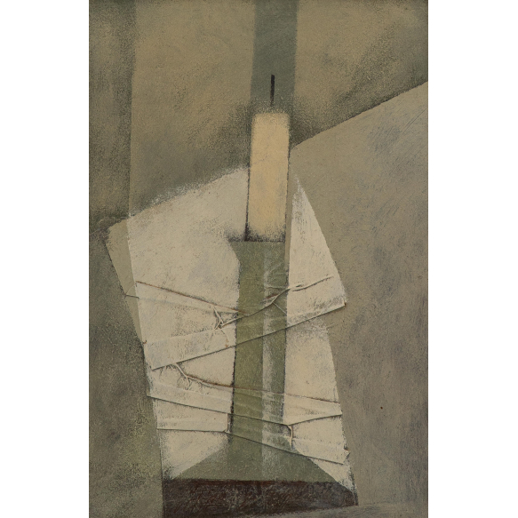 EspañolCarlos Scliar - Castiçal - 1972 - Vinil encerado e colagem sobre madeira - Assinado verso - 37 x 26 cm. Coleção Múcio Bandeira de Mello.