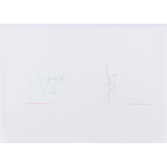 EspañolWaltércio Caldas - Desenho - 2010 - Caneta esferográfica, nanquim e lápis de cor, fio de algodão e alfinetes sobre papel - 76 x 120 cm.