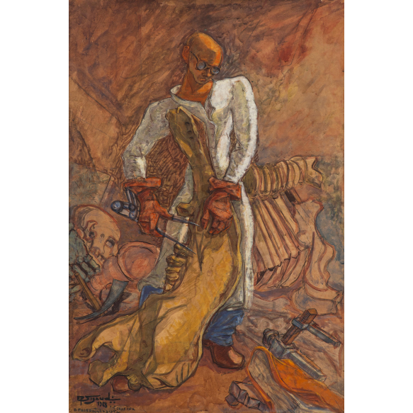 EspañolEugênio Proença Sigaud - O paleontologista - 1963 - Pintura a caseína sobre tela - Assinado canto inferior esquerdo - 97 x 65 cm.
