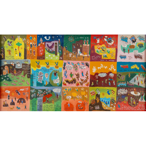 EspañolJosé de Freitas - Histórias Bíblicas - 1968 - Guache sobre cartão colado em eucatex - Assinado meio inferior - 26 x 49 cm.