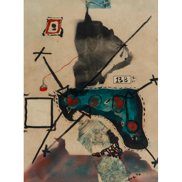 Spray, guache e colagem sobre cartão77 x 57 x 0 cmCanto inferior direito