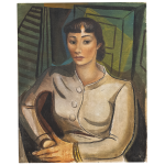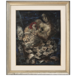 Cândido Portinari - 'Mulhercom galo' - Óleo sobre tela - Assinado e datado 1941 inferior direito. - 100 x 80 cm. - Participou da exposição Dez Anos da Morte, Museu Nacional de Belas Artes, Rio de Janeiro, p. 60 1972.-- Participou da exposição Latin American Art Through 1000 Years, Pasadena Art Institute, Pasadena, 1943 P. 319 -- Participou da exposição Portinari e DI Cavalcante: Dois Mestres da Pintura Contemporânea Brasileira, Galeria Bonino, Rio de Janeiro- RJ,1977. p. 126 -- Reproduzido no Catalogado no Raisonné, Vol. II, Sob o N.1382 (FCO2814) - Reproduzido no livro Expoentes da pintura Brasileira, Texto crítico de Antonio Bento, sob o Nº. 23. - 100 X 81 cm.