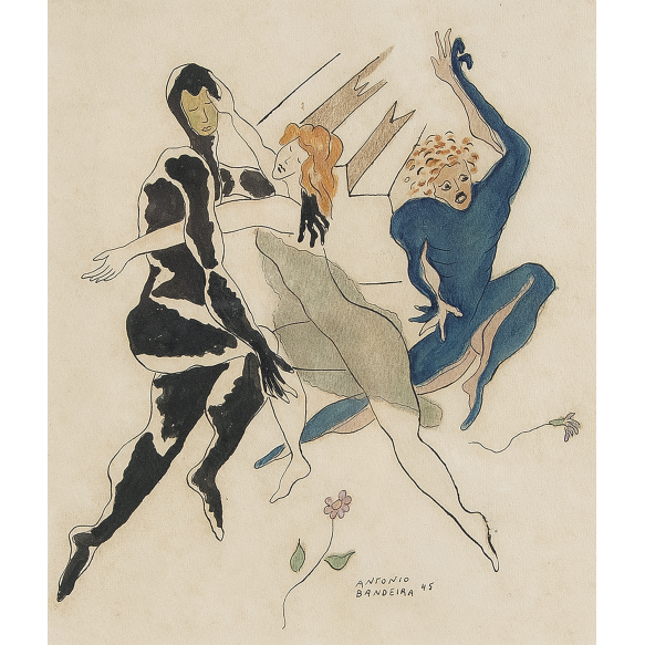 Antônio Bandeira - Aquarela e Nanquim sobre papel. - Assinado e datado 45 inferior direito. - 26 x 22 cm.