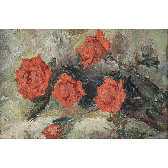 Leopoldo Gotuzzo - Rosas - Óleo sobre placa.- Assinado e datado 1974 inferior direito. - 23 x 33 cm.