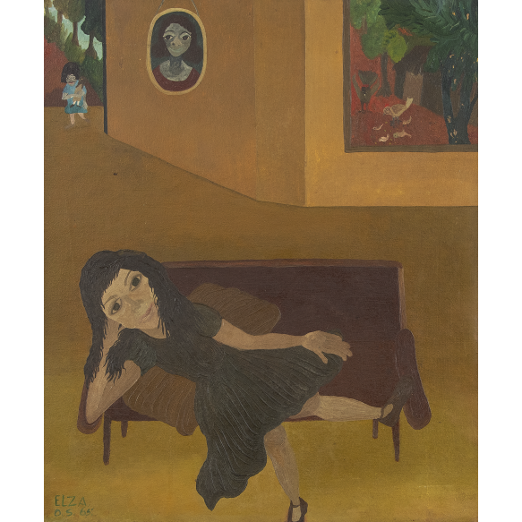 Elza Oliveira de Souza - O descanso da modelo - Óleo sobre placa. - Assinado e datado 65 inferior esquerdo. - 55 x 46 cm.