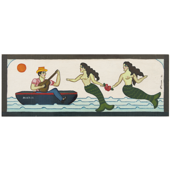 Mirian - Maria- Óleo sobre madeira. - Assinado e datado 82 lateral direita. - Titulado inferior esquerdo. - 18,5 x 50 cm.