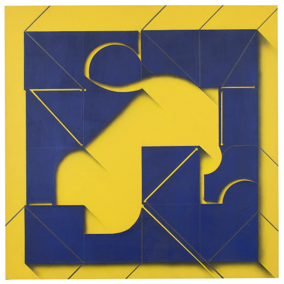 Abelardo Zaluar - Composição- Óleo, colagem e grafitesobre placa. - Datado 1970 no verso. - 90 x 90 cm.