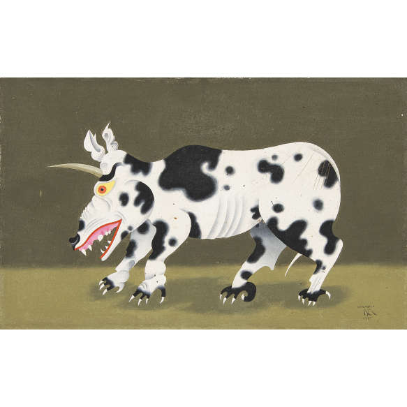 Roberto Magalhães - 'FERABELA' - Óleo sobre tela. - Assinado e datado 1985 e titulado inferior direito. - 22 x 35,5 cm.