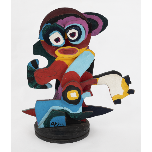 Karel Appel - 'Close Together' - Escultura em madeira policromada. - Assinado inferior esquerdo. - Numerada 27/50 na base. - 78 x 72 cm.