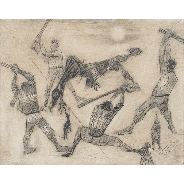 Grafite e sanguínea sobre papel.31 x 39 cmAssinada e datada.