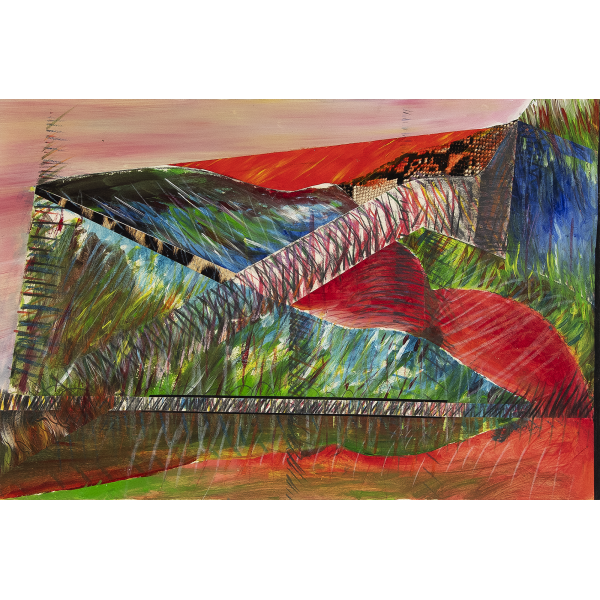 Acrílica, lápis cera e colagens sobre papel.34 x 51 cmAssinado e datado inferior esquerdo.