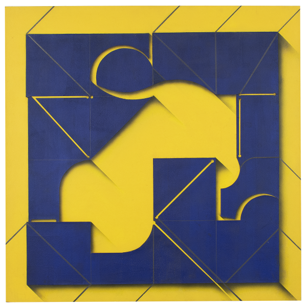 Óleo, colagem e grafitesobre placa.90 cmAssinado e datado no verso.