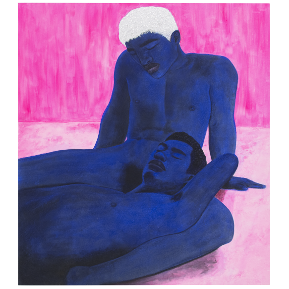 EspañolBrendon Reis - Uma história de Amor Querr Negra - Ying e Yang, 2021 - Tinta acrílica, giz pastel oleoso e prata sobre tela. - 175 x 155 cm.