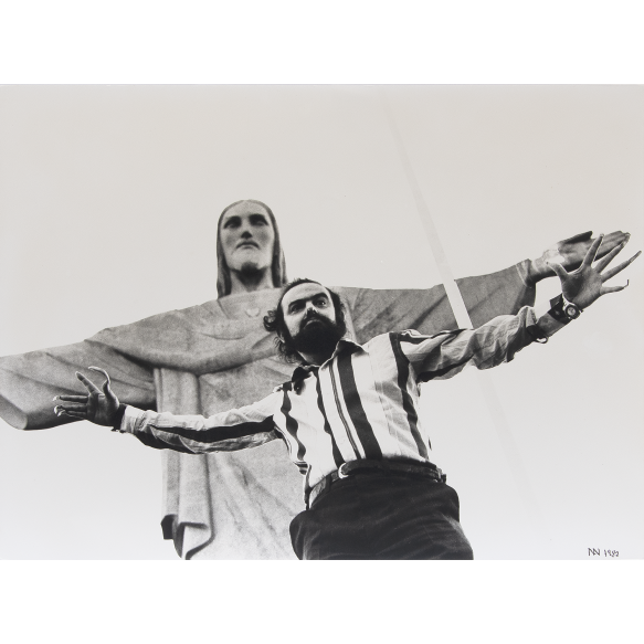 EspañolIvan Cardoso - Zé do caixão no cristo - Fotografia analógica em papel Kodak fosco. - Assinada e datada 1982 inferior direito. - 30 x 40 cm.