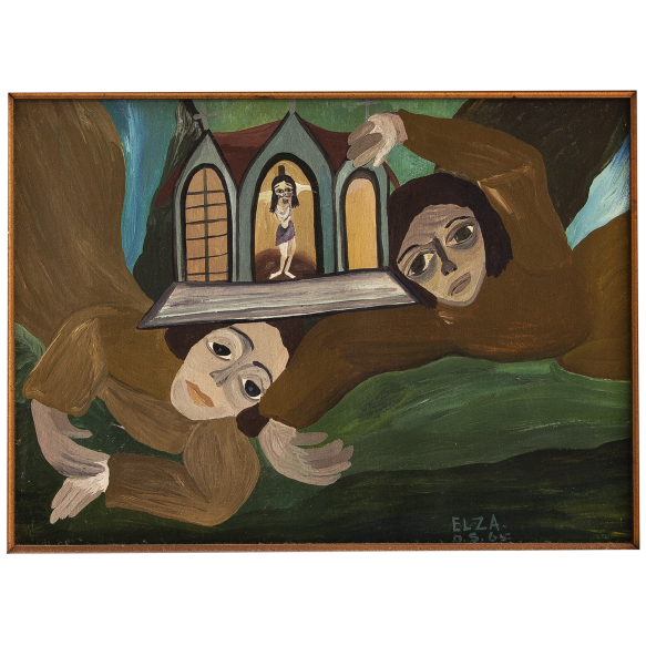 EspañolElza Oliveira de Souza - Óleo sobre papel colado em placa. - Assinado e datado 65 inferior direito. - 17 x 23 cm.