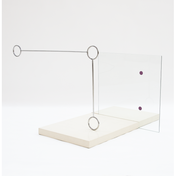 EspañolWaltércio Caldas - Naipe. - Mármore, aço inoxidável polido e tinta acrílica sobre vidro. - Assinado, datado 2008 e carimbado na base. - 63 x 101 x 78 cm.