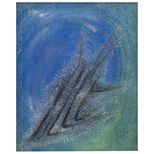 EspañolAntônio Bandeira - Primaveril Azul - Têmpera sobre tela. - Assinado e datado 65 inferior direito. - Assinado, datado 1965, titulado e situado Paris no verso. - 73 x 60 cm.