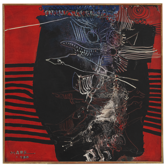 EspañolManabu Mabe - Composição - Óleo sobre tela. - Assinado e datado 1980 inferior esquerdo. - Assinado e datado 1980 no verso. - 65 x 65 cm.