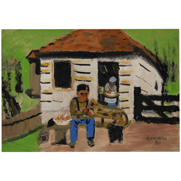 EspañolRanchinho - Cena rural - Óleo sobre cartão colado em placa. - Assinado e datado inferior direito. - 34 x 49 cm.