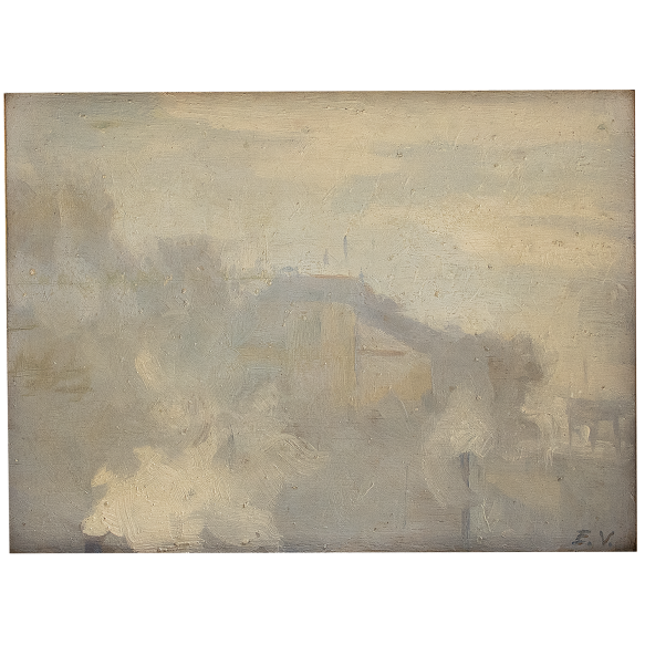 EspañolEliseu Visconti - Nevoeiro no Morro de santo antônio - Óleo sobre madeira. - Assinado inferior direito. - 25 x 35 cm. - Registrado no catálogo raisonné do Projeto Eliseu Visconti, sob N. P567.
