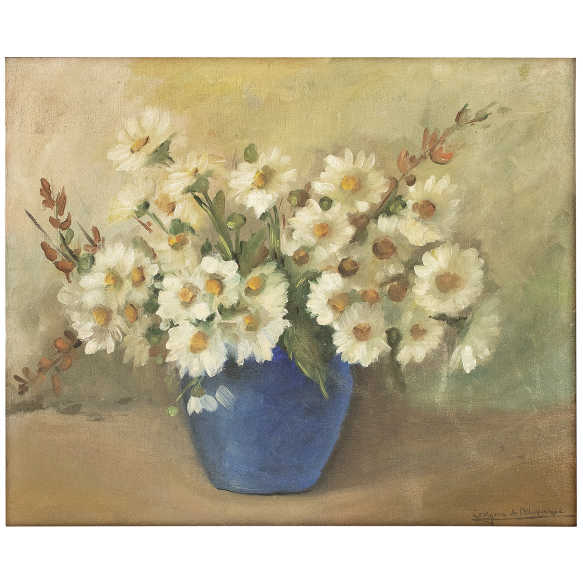 EspañolGeorgina de Albuquerque - Margaridas - Óleo sobre tela. - Assinado inferior direito. - 49 x 69 cm.