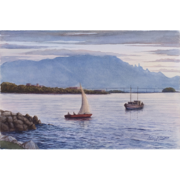 Dom Antônio Orleans e Bragança - Baía da Guanabara - Vista do Parque do Flamengo/RJ - 30 x 46 cm - Aquarela - Assinatura canto inferior direito e Data 2012