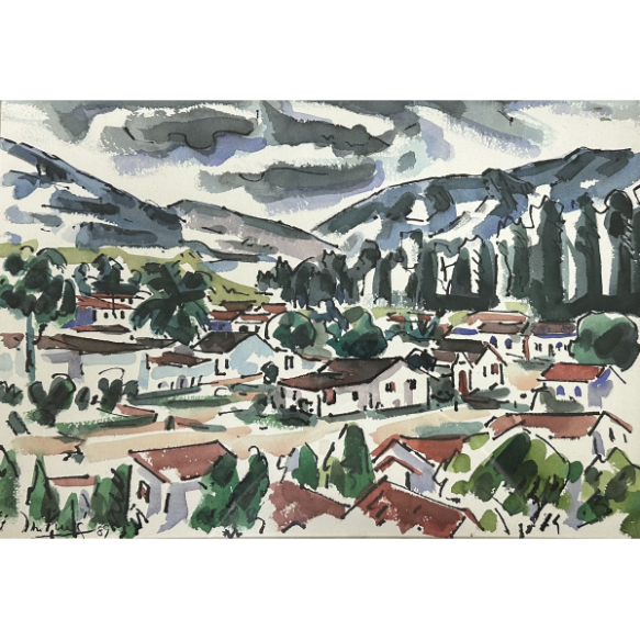 Inimá de Paula - Paisagem - 35 x 50 cm - Aquarela - Assinatura canto inferior direito e Data 1989 - Obra reproduzida no Raisonné Volume I na página 549
