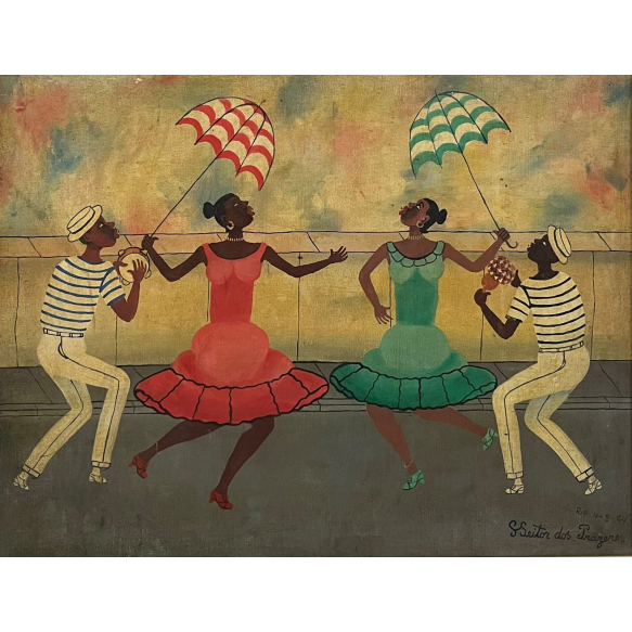Heitor dos Prazeres - Frevo - 46 x 60 cm - Óleo sobre tela - Assinatura canto inferior direito e Data 1964 - Proveniente de uma coleção importante de Minas Gerais - O pai do proprietário desta obra foi advogado do artista e foi presenteado. Na aquisição acompanhará transferência de propriedade citando o histórico da obra.