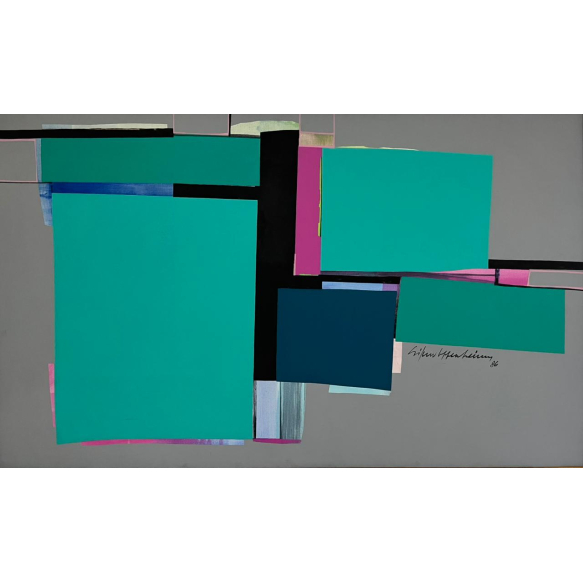 Silvio Oppenheim - Geometria lírica - 100 x 160 cm - Liquitex sobre tela - Assinatura canto inferior direito e Data 1986 - Etiqueta do atelier do artista no verso da obra