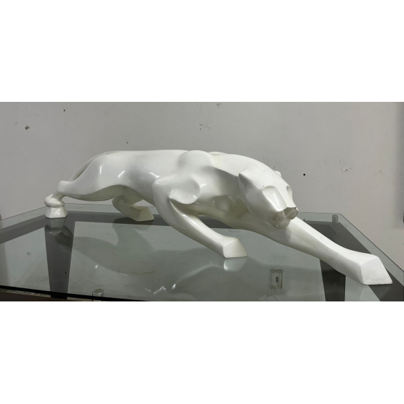 Leopoldo Martins - Pantera em ataque - 30 cm de altura x 150 cm de comprimento x 34 cm de largura - Escultura em ortoftálica e tinta automotiva - Assinatura na escultura