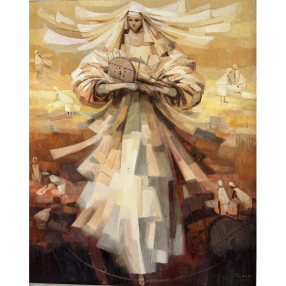 Enrico Bianco - Madona no trigal - 50 x 40 cm - Óleo sobre eucatex - Assinatura canto inferior direito e Data 1983 - No verso apresenta etiqueta da Galeria Contorno