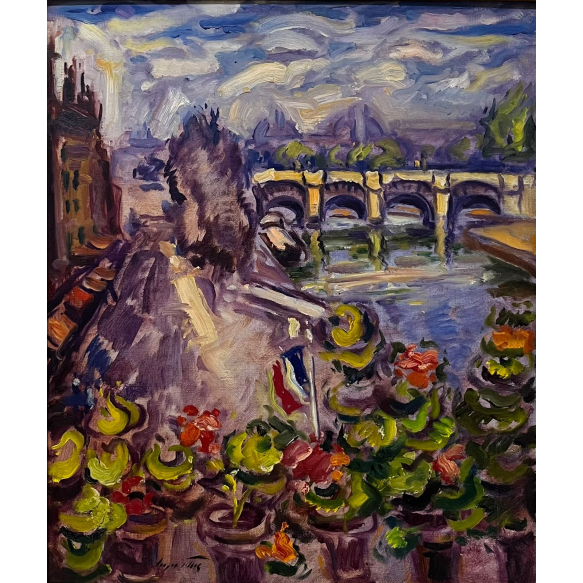 EspañolSérgio Telles - Janela do meu atelier e Rio Senna em Paris - 55 x 46 cm - Óleo sobre tela - Assinatura canto inferior esquerdo e Data 2002